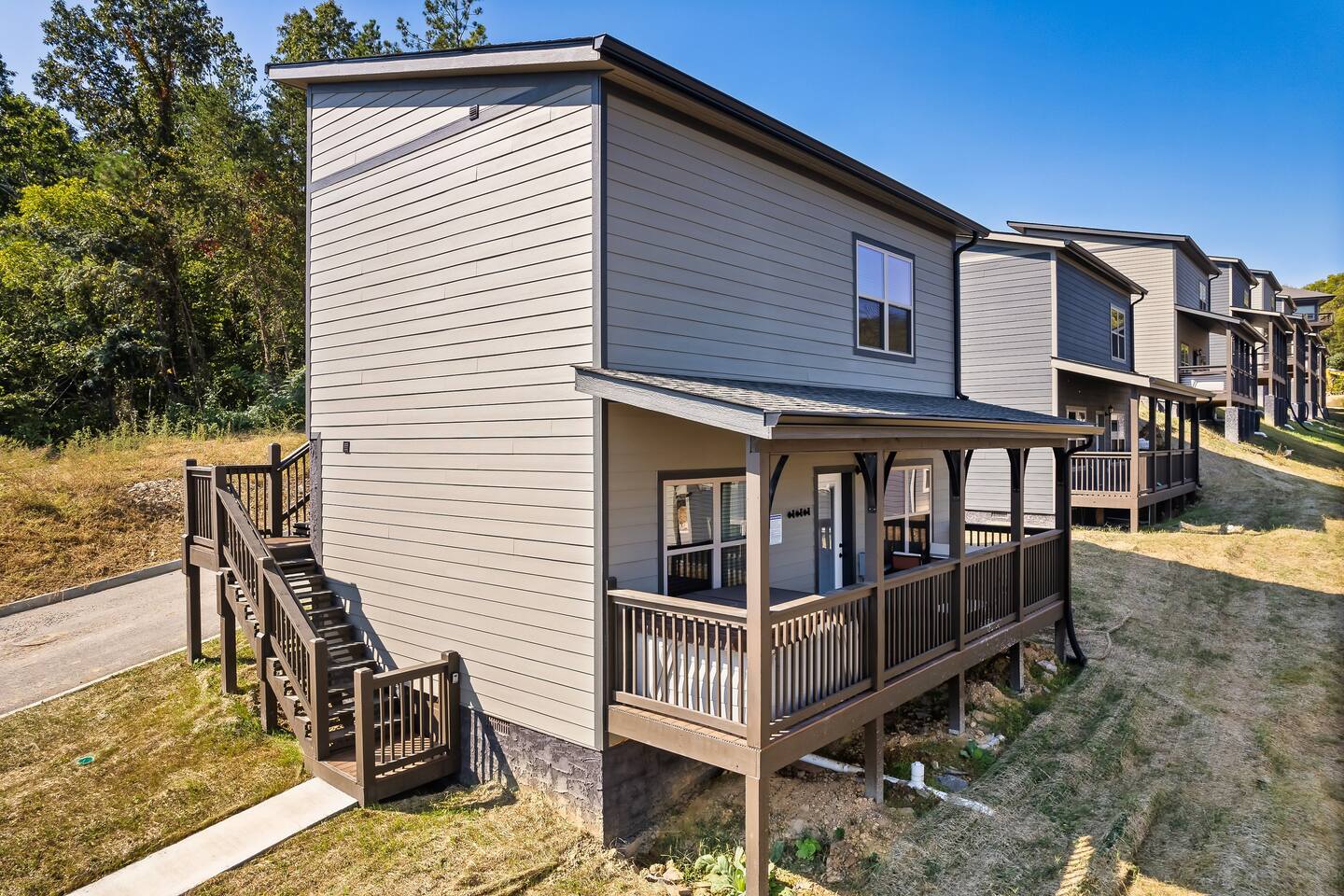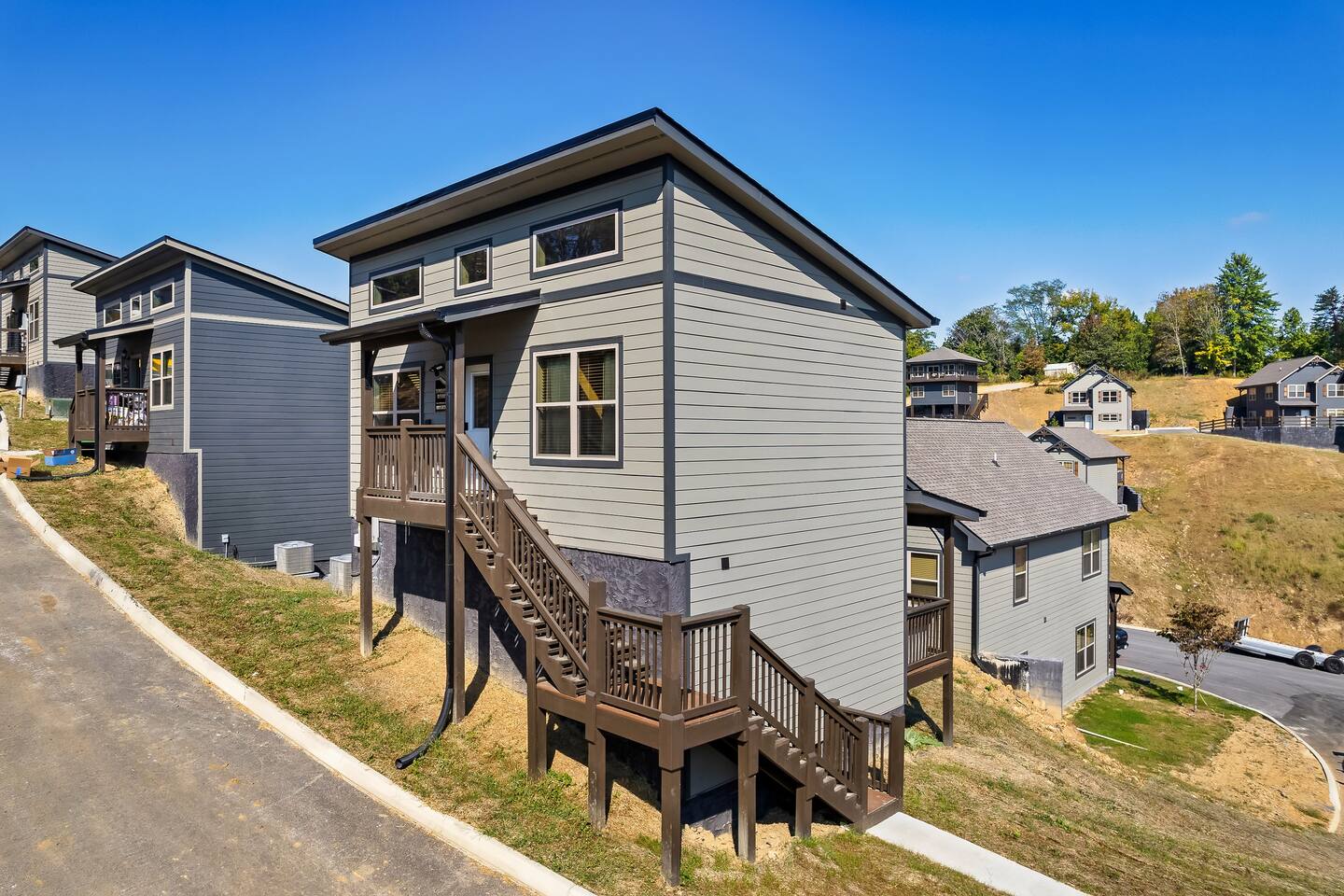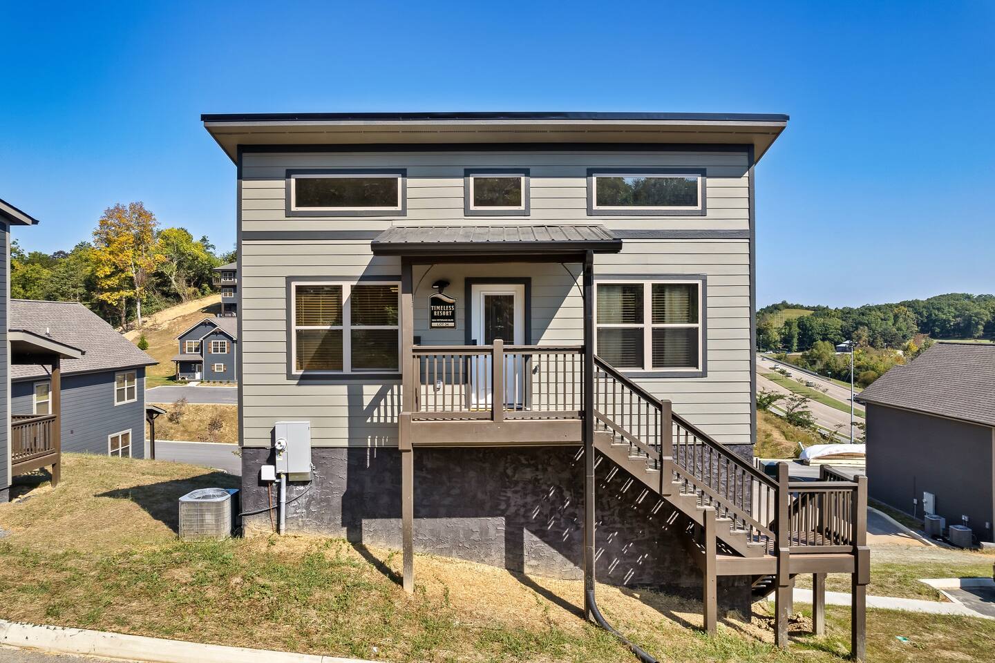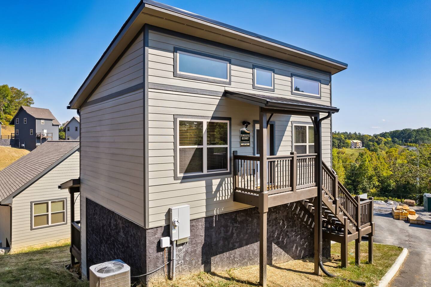 The cabin is located in a brand new resort community. There are other neighboring cabins.