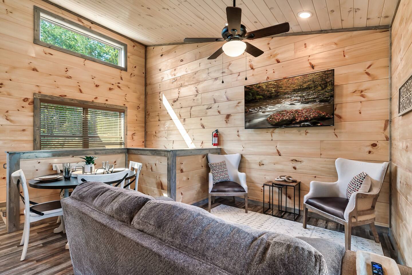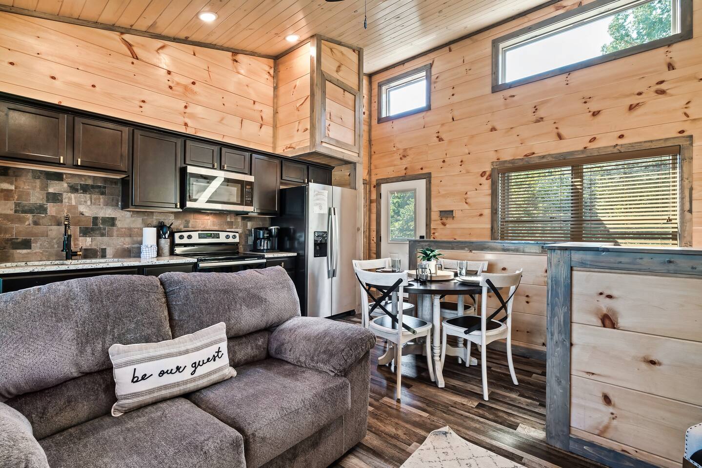 This cabin does have steps to the entry and is also a two story home with living space and bedrooms on both floors. Maximum five guests. If you bring extra guests you will be asked to leave. This resort is brand new and still under construction. Expect to see and hear typical construction noises and dirt/mess. These are beyond our control. During your stay at the cabin, you will receive a one-time bed and bath linen setup as well as the start-up amenities listed below. These start-up amenities will not be replenished during your stay. A rental agreement between owner and guest must be signed prior to staying. This will be provided following booking this cabin. Reservation Alterations will not be accepted and are up to the hosts discretion. Zero tolerance for smoking, vaping, drug use, and illegal activity. Travel insurance is recommended for forest fires, flooding, blizzards, and other natural disasters and life events. We will not refund due to said circumstances.
